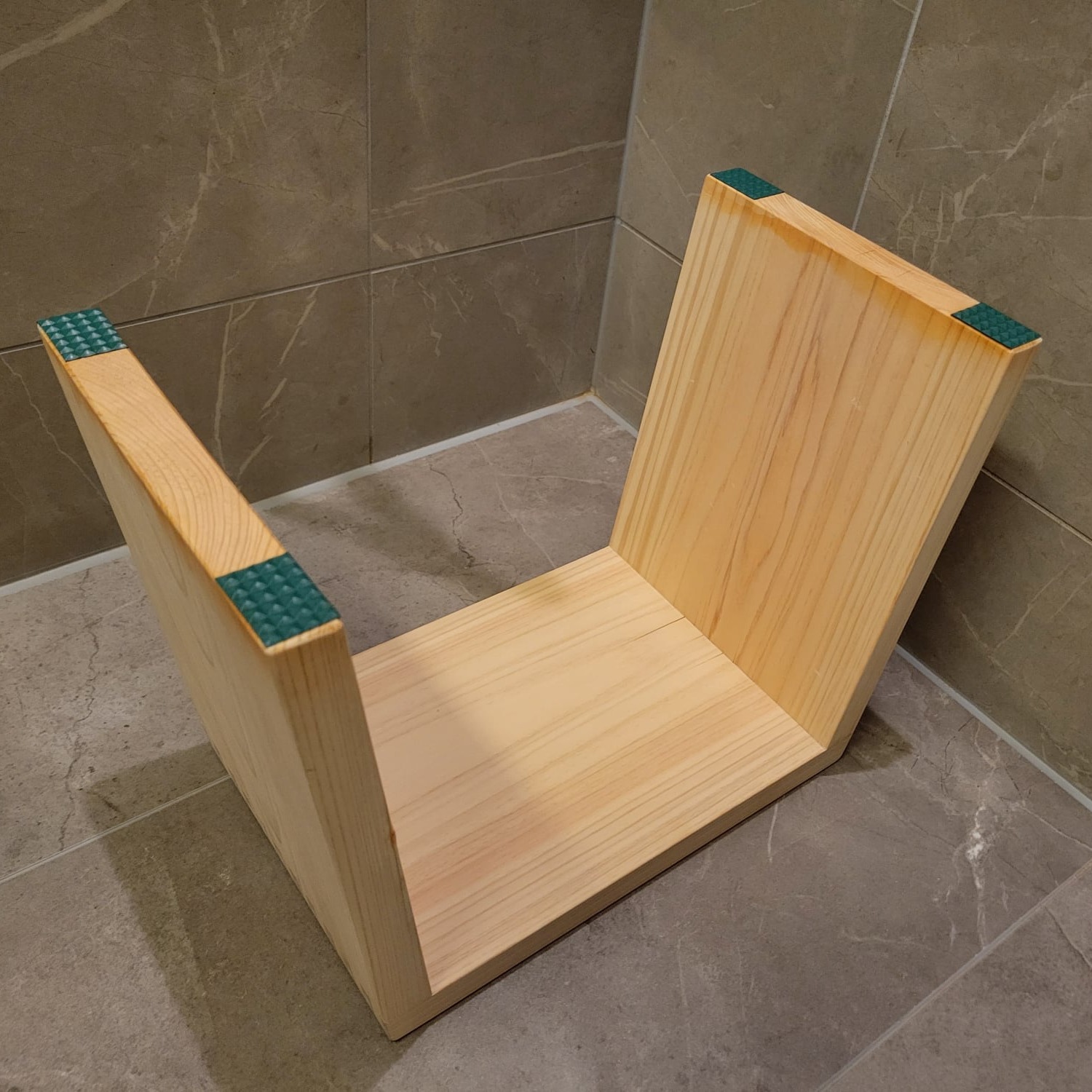 金剛檜椅子は2週間に1回重曹で洗う以外は必要に応じて一般的なお風呂洗剤で洗うのみ。
